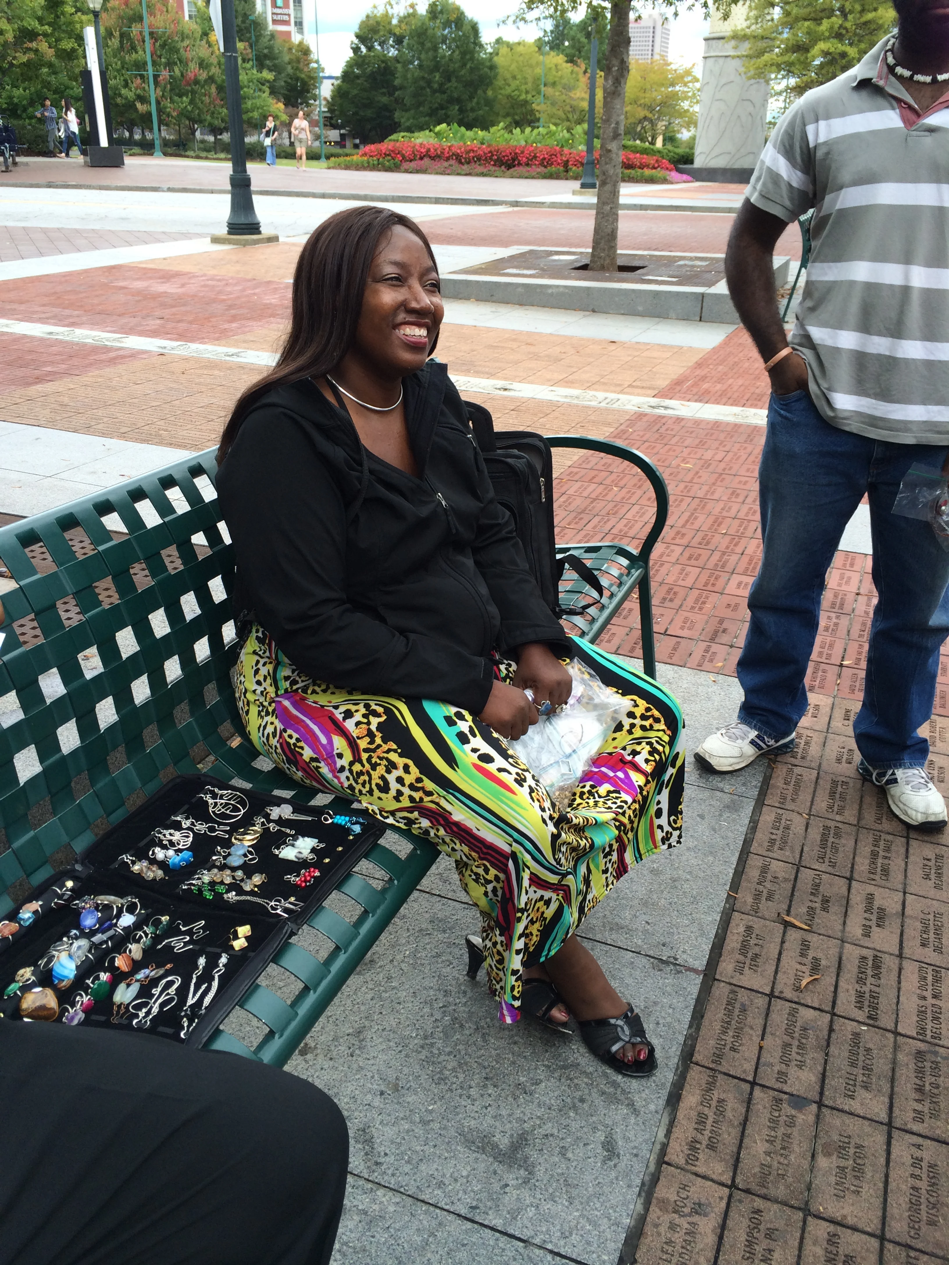 Danielle's Story: Today was an exciting day! One of my favorite stories from today was meeting our new friend, Starran. She was selling jewelry in the Centennial Olympic Park and noticed us when we were praying over a guy. While we were praying for this guy, a whole group of women from the Woman Thou Art Loosed Conference ended up praying with us and we caused a little scene. When Starran saw that, she told one of our camera crew that she wanted us to go over to her when we were finished. We ended up finishing and went over to talk to her. She started off by asking which one of us was a prophet?! As soon as she said that, I knew this whole situation was about to get fun! We ended up giving her words of encouragement and we got to pray for her and her co-workers! She was brought to tears by the goodness of the Lord! She was in awe of Him sending us to her. She was so thankful, that she wanted to bless our whole team with a piece of jewelry! I love how the Lord strategically crossed our paths today!