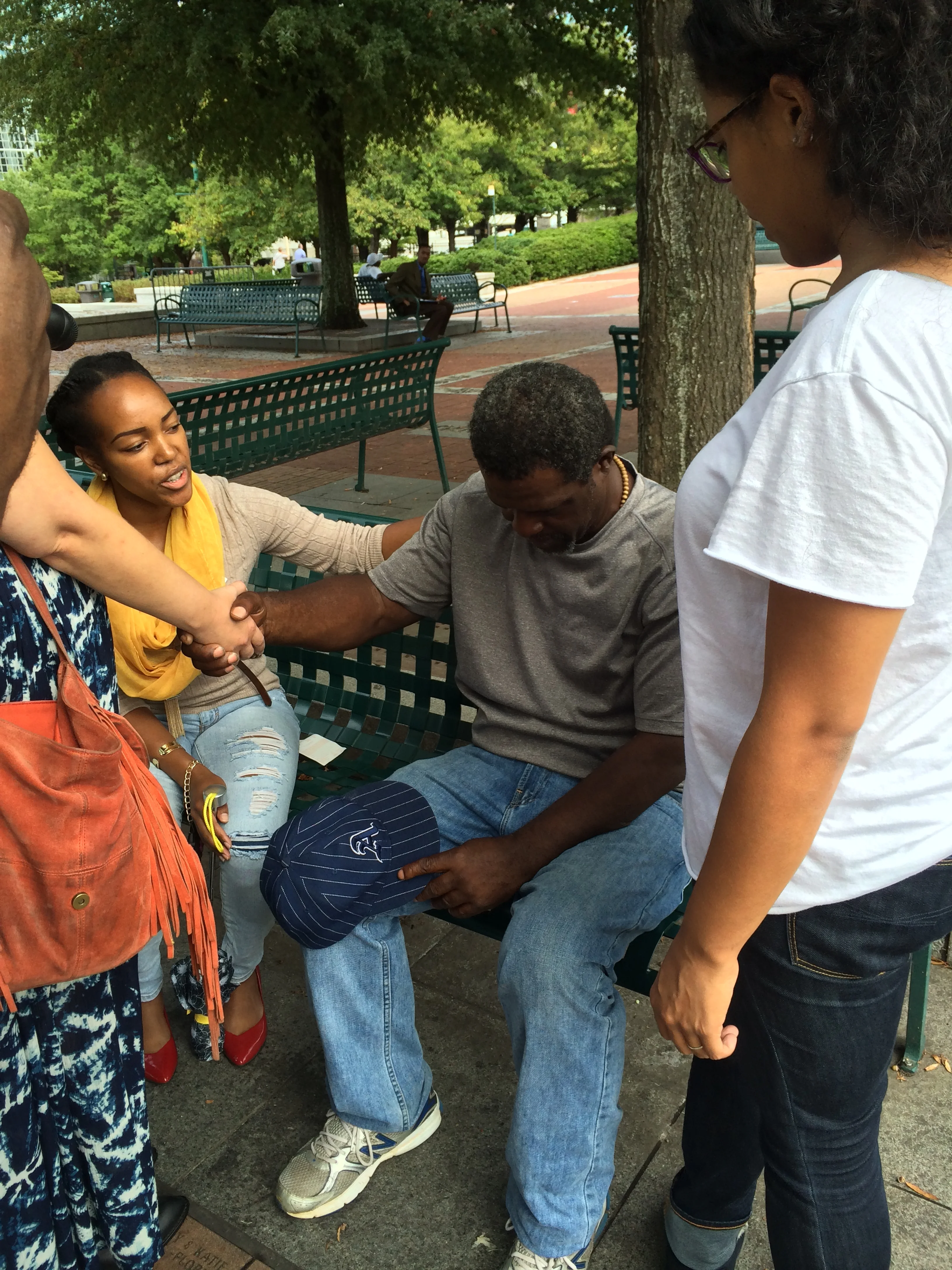 Another highlight of the day was praying for Anthony in the park. He was hesitant at first but then opened up with complete honesty and bravely spoke the truth. He was crying out for God to show up and reveal himself. As we began to pray for him a group of women walked by from the Woman Thou Art Loosed conference. When they realized what was happening they didn't even hesitate but jumped right in there and fought for Anthony in prayer. This seemingly simple act is a beautiful example of where the church is headed. We are becoming a unified bride who moves as one body to lift up those around us. Where two or three (or in this case 9) are gathered in Jesus' name there He is in the midst of us. The Lord made himself known today in real and wonderful ways. All we had to do was show up and say yes.